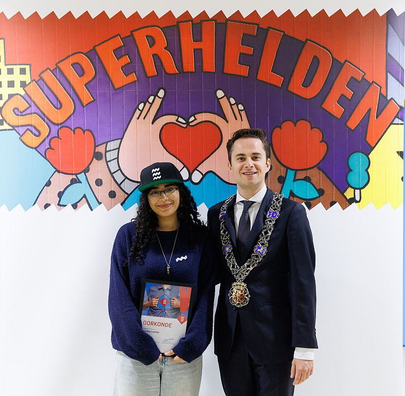 Nigina 17 jaar, ontving het jeugdlintje uit handen van wethouder Remco van Dooren. Zij zet zich op indrukwekkende wijze in voor anderen. Ze werkt vrijwillig in het Máxima Medisch Centrum op de afdeling Nierdialyse, organiseert kledingmarkten voor daklozen, helpt bij Severinus en het Hornemann Huis, en is ambassadeur van de vrijheid via Stichting 18 September. De wethouder: “Nigina’s warmte, positiviteit en inzet maken haar tot een voorbeeld voor veel jongeren.”