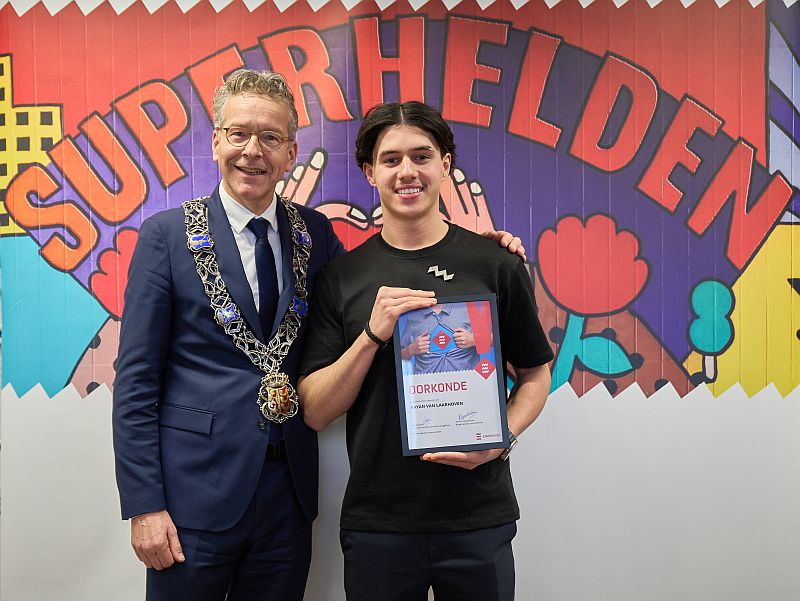 Rayan 18 jaar, trad heldhaftig op bij een incident in een speeltuin, vertelde de burgemeester bij de uitreiking van het tweede jeugdlintje. Toen een vriendin hem belde over een man die schennis pleegde, kwam hij direct in actie: hij belde 112, filmde de verdachte en noteerde het kenteken. Dankzij zijn snelle handelen kon de politie de man aanhouden. Rayan toont dat jongeren verantwoordelijkheid nemen en verschil maken.