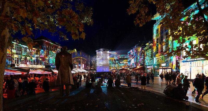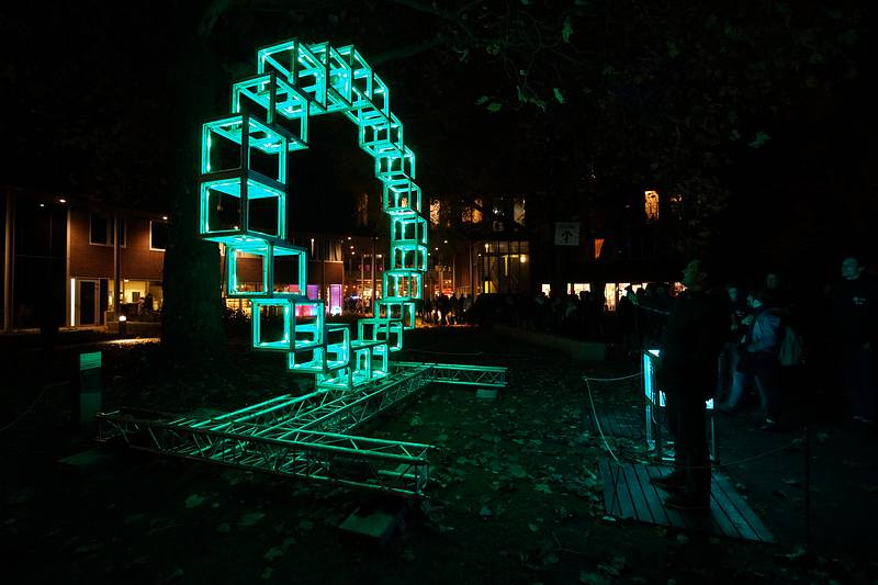 Zoals eerder gezegd het was een mooi mix tussen spektakel en verstilde schoonheid maar ook een paar projecten die qua licht niet tot de verbeelding spraken. Die plastic vuilniszakken in de dommel hieronder hebben we met onze bezoekers regelmatig overgeslagen.