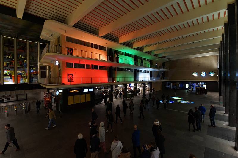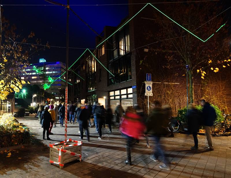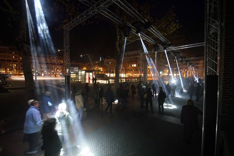 Voor deze bewegende lampenkappen moest je in het DELA gebouw zijn – Foto: Rien Valk
