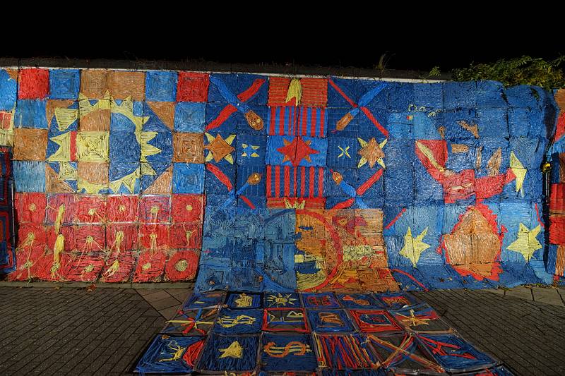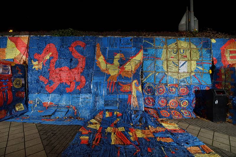 Schoolkinderen deden ook mee in het project “het dak van de keizer” oorspronkelijk zou dit boven winkelstraat de Demer gespannen worden maar in verband met “instortingsgevaar” door mogelijke regen is het verplaatst onder naar de wand van de Fellenoord. Jammer!