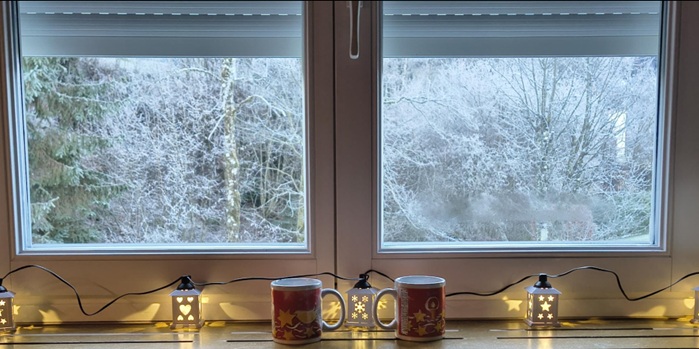 We hadden inmiddels ontdekt dat er één plek in huis was waar we ons echt senang voelden en dat bleek de keuken te zijn. Gemütlich warm en zoals moderne Nederlanders tegenwoordig zeggen: ‘Heel kjoet ingericht!’ Wat ons persoonlijk het meest aansprak was vooral wat er buiten te zien was op de geur van afgebakken semmelbroodjes.