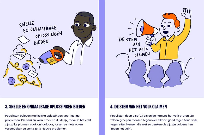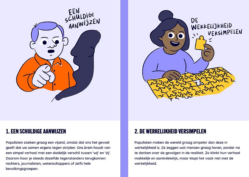 Herken jij deze trucs in politieke debatten of op tv? Populisten maken hier veel gebruik van. Bedenk je of hun campagneboodschap Nederland echt vooruit helpt.