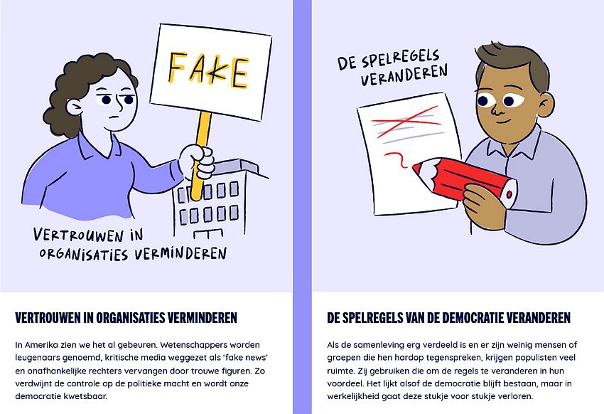 Populisten gebruiken trucs om steun te winnen. Als je die trucs niet doorzien, kan dat grote gevolgen hebben voor onze democratie. Willen we Amerika achterna?