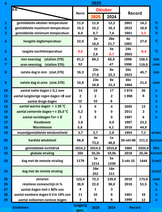 Weerhistorie: het weer van oktober 2025 in de regio Eindhoven