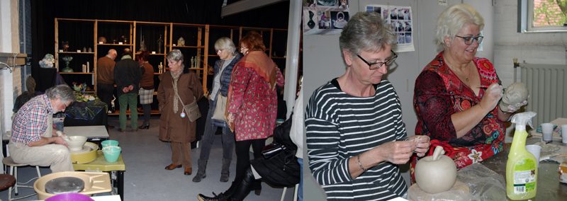 Tijdens de expositie zullen er draai- en handvorm demonstraties gegeven worden. Als je een keer wilt kijken of het werken met klei ook iets voor jou is kruip dan achter de draaischijf of ga lekker aan tafel met klei aan de gang. Dit alles onder deskundige begeleiding van een van onze vier professionele docenten.
